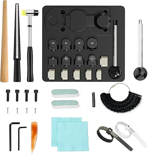 GAXPAK Outil de cintrage d'anneaux, Machine à fabriquer des anneaux en cuillère, Kit de fabrication de bijoux avec matrices en nylon, complet d'outils de cintrage d'anneaux Kit de mesure d'anneaux