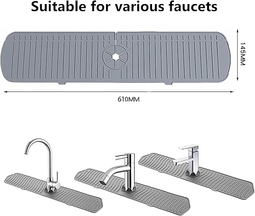 Tapis de Robinet, Silicone de Robinet Tapis, Pare éclaboussures pour évier de cuisine, Tapis d'évier, Protection anti éclaboussures, Protection anti éclaboussures pour robinets de cuisine (Gris)