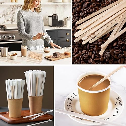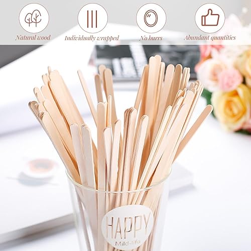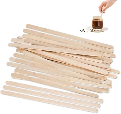 GIDWRIY 100 Pièces Touillettes Cafe Bois 14 CM,Touillette de Boisson Jetable,Baton Café,Mélangeur Boisson Manuel,Batonnet en Bois Glace,Cocktail Agitateurs pour Boissons Chaudes et Froides