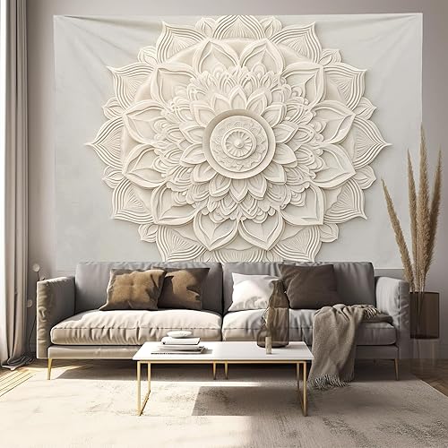 ALTCIRNMD Tapisserie Mandala Beige, Décoration Muralesculpture Vintage, Installée Sans Endommager Les Murs, Garniture Murale,130X150Cm, Fond De Chambre, Dortoir, Salon