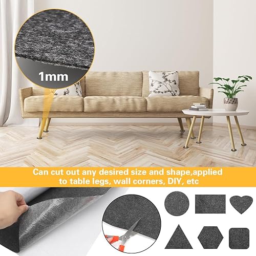 Gohytal Feutrine Autocollante 40x220cm, Gris Foncé Feutrine Adhesive, Rouleau Feutrine Adhesive,Tissu Feutre epaisse 1mm, Feutrine Autocollante Pour Doublure de Boîte, Cadre Photo, Pied de Chaise