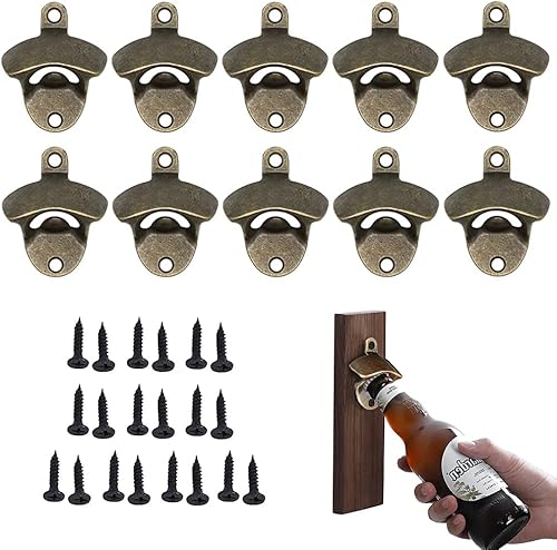 Gtwinsone 10 Pièces Decapsuleur Mural Biere Vintage Ouvre Bouteille Mural Montage Mural Décapsuleur Ouvre Biere Murale en Metal avec Vis Décapsuleur à Bière pour Bars, Restaurants, Cafés, Cuisines