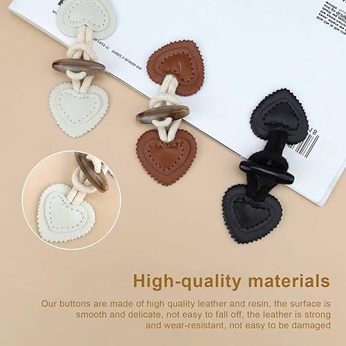 FINELYCR Boutons à Bascule en Cuir - 9 Pièces, 3 Couleurs - Corne Boutons pour Pulls, Manteaux, Vestes