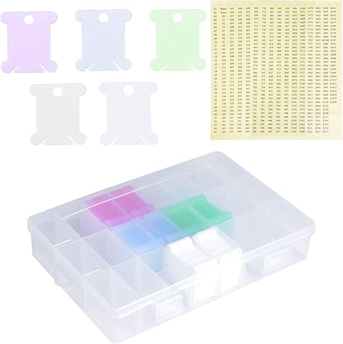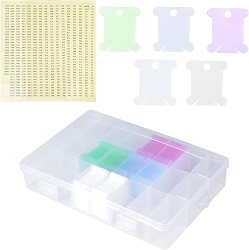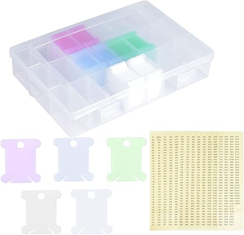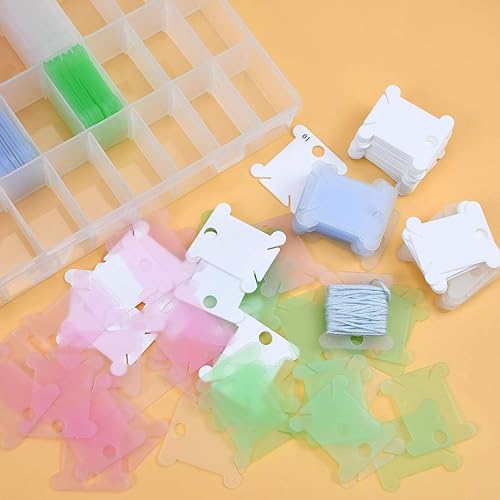 Volumoon 150 Pièces Bobines de Fil à Broder en Plastique, avec Boîte de Rangementavec 24 Grilles et Autocollants Numérotés, Organisateurs de Fils à Broder pour r Bricolage et Accessoires de Rangement