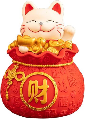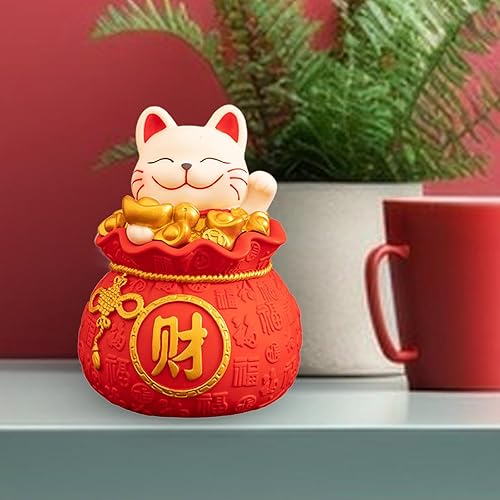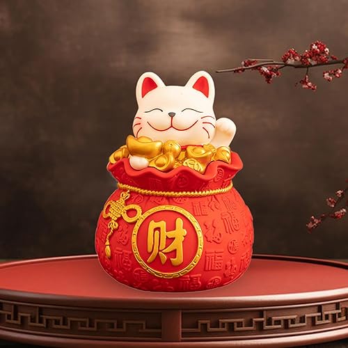 F Fityle Tirelire chat chinois Statue chat chanceux chinois bonne chance chat décoration Feng Shui décoration boîte d'économie pour entrée chambre, styler un
