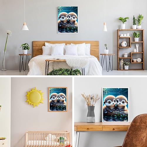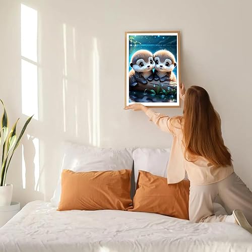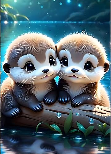 GDYEEH 5D Bébé Loutre D'amour Peinture Diamant Painting Kit, DIY Mignon Art du Diamant Complet Kits, Loutre Diamond Art Strass Point de Croix Painting pour Adultes Débutants Maison Décor 30X40cm