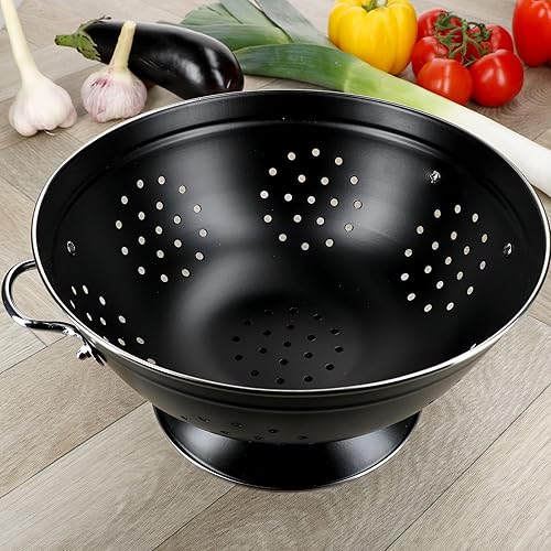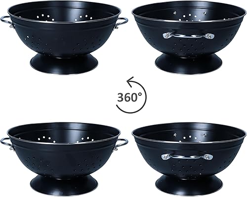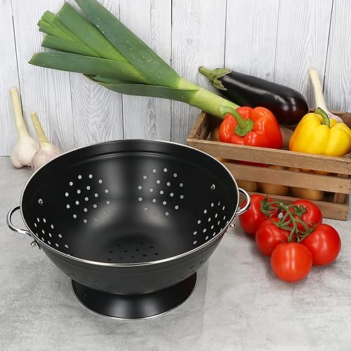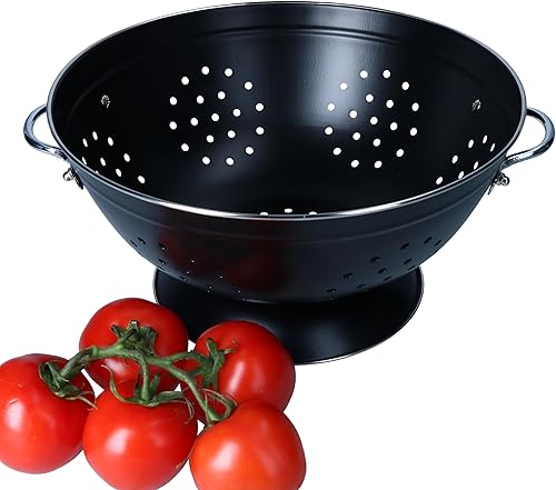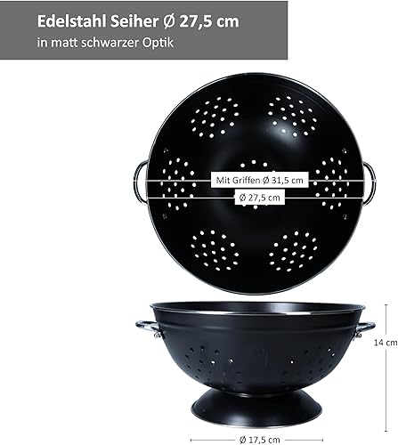 Passoire rétro 27,5 cm | Passoire de cuisine rétro avec poignées et pied | Passoire en acier laqué noir pour pâtes, légumes et fruits