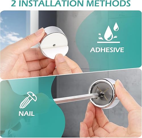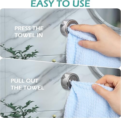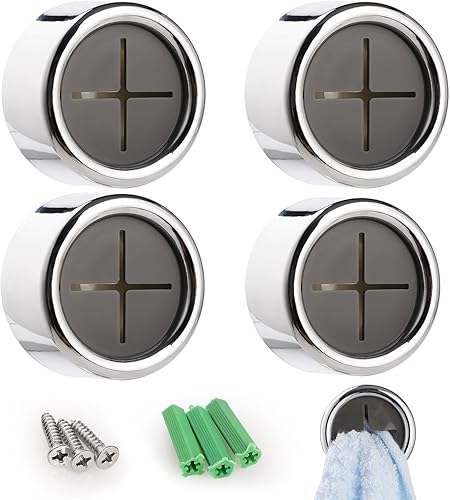 GeeRic Crochets Adhésifs Ronds pour Serviettes, Lot de 4 pour Cuisine et Salle de Bain, à Enfoncer pour Essuie-mains, Argentés