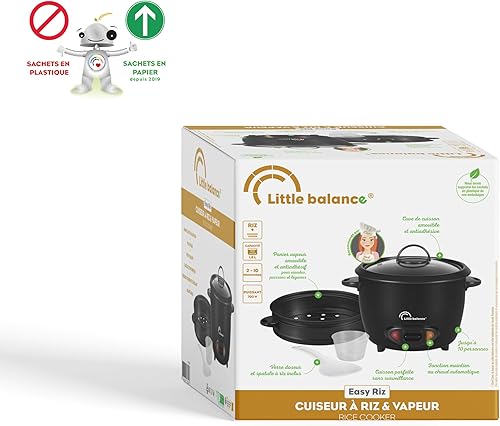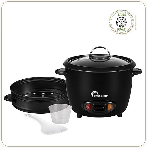 LITTLE BALANCE 8726 Easy Riz, Cuiseur à Riz Automatique, Cuit Vapeur 1,8 L, Sans PFAS,Arrêt automatique, Fonction Maintien au Chaud, Couvercle transparent, 10 personnes, 700 W, Noir