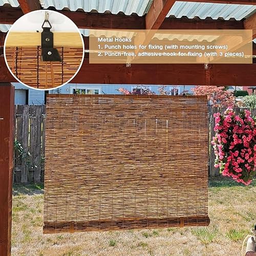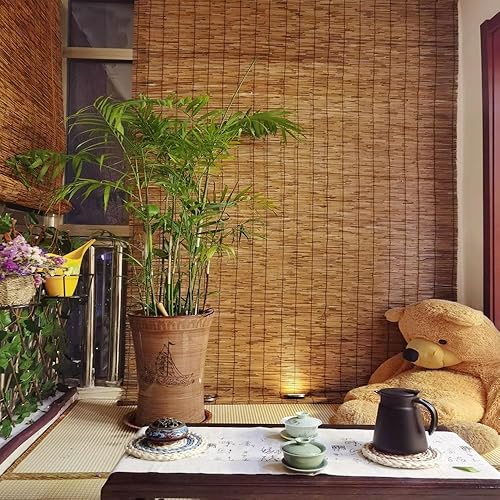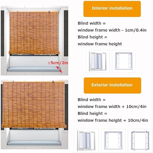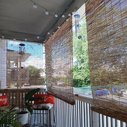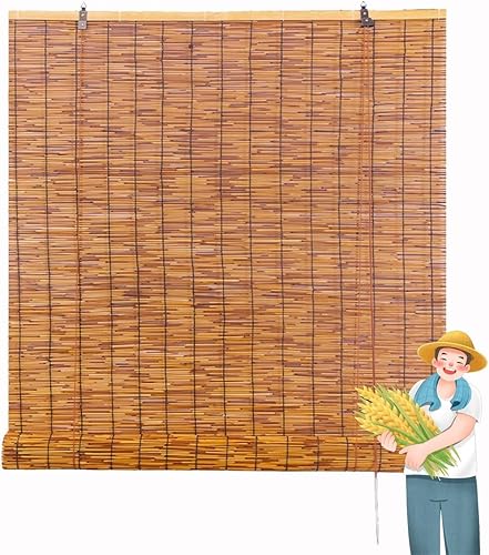 Générique Store en Bambou Exterieur, Rideau Enrouleur Bambou sans Percage 10 À 180 Cm Largeur, sur Mesure Stores Occultant, Rétro Persienne Terrasse Store Roulant avec Levage
