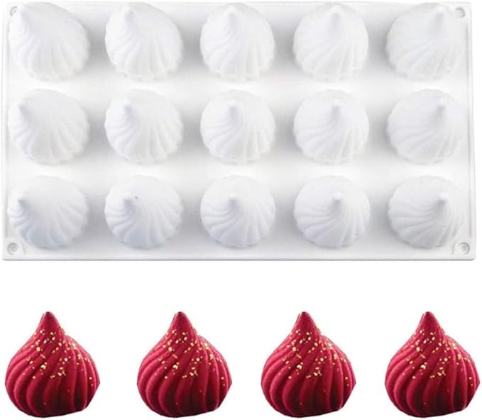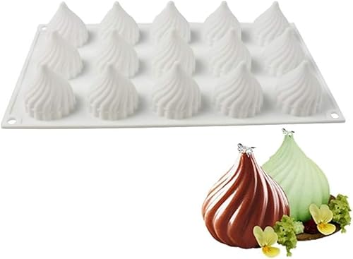 KOMUNJ Moule à oignons en silicone à 15 trous, pour la cuisson des cupcakes, du savon, du pudding, du chocolat (forme oignon/spirale)