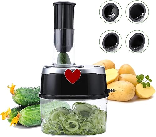 Lightakai - Coupe-légumes électrique, 2 l, trancheuse multifonction en spirale, coupe-légumes électrique, avec 4 lames en acier inoxydable