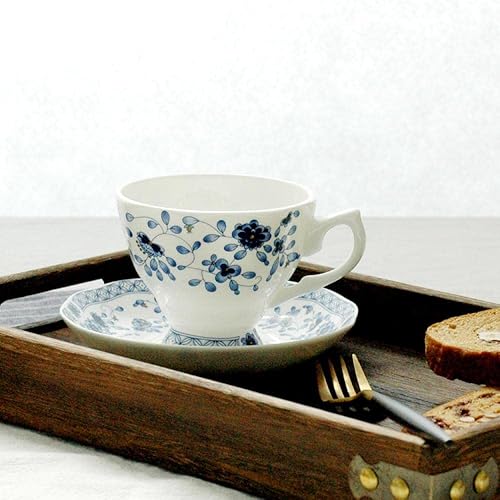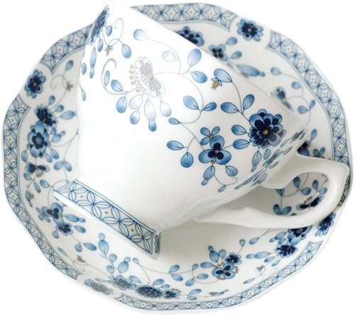 JHNIF Ensemble tasse et soucoupe en porcelaine anglaise bleue et blanche, tasse à thé, tasse à café, 177 ml