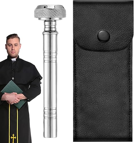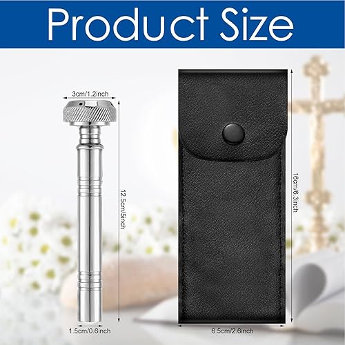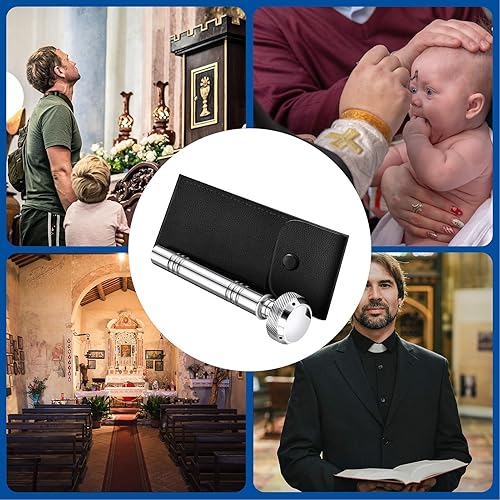 Bénitier, porte-eau bénite - aspersoir chrétien de poche, aspersoir de poche avec sac de rangement en cuir, bénitier religieux en cuivre