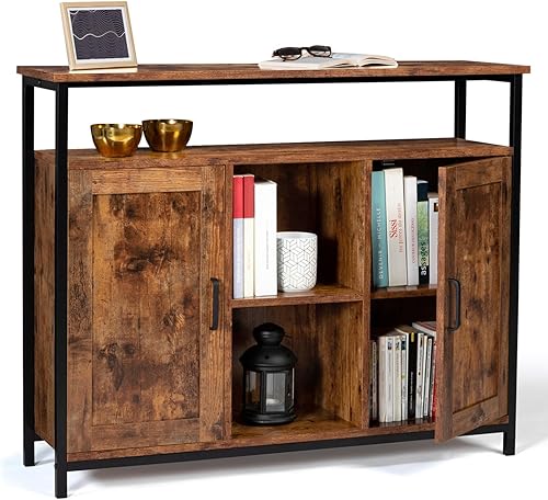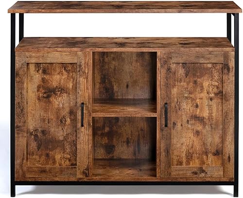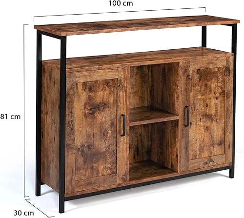 IDMarket - Buffet 2 Portes 100 cm Dayton avec étagères Effet Vieilli Design Industriel