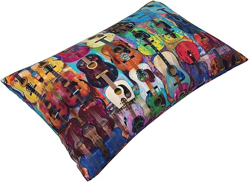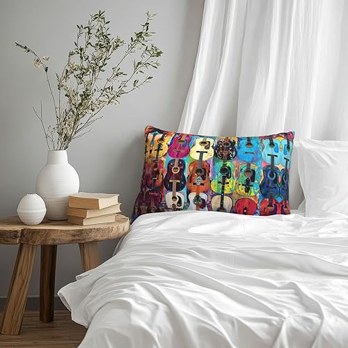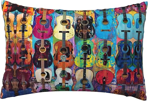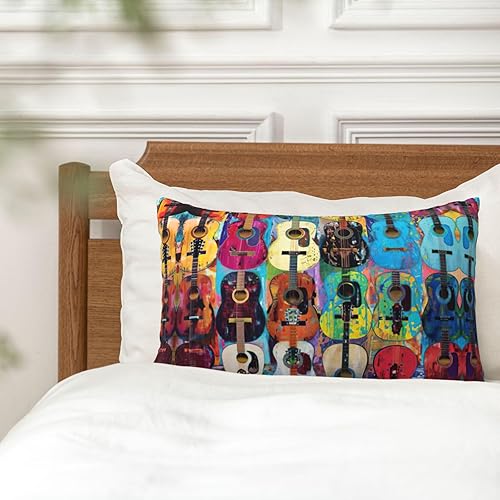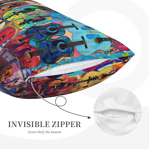 GUOLGP Housse de coussin décorative avec fermeture éclair dissimulée Motif guitare acoustique et guitare
