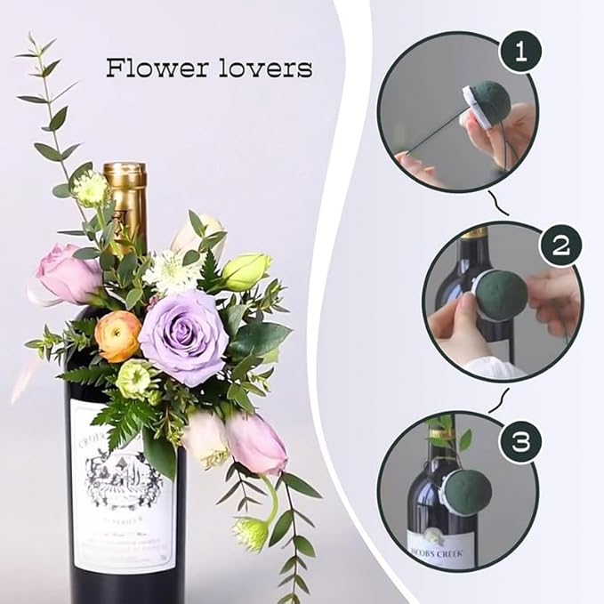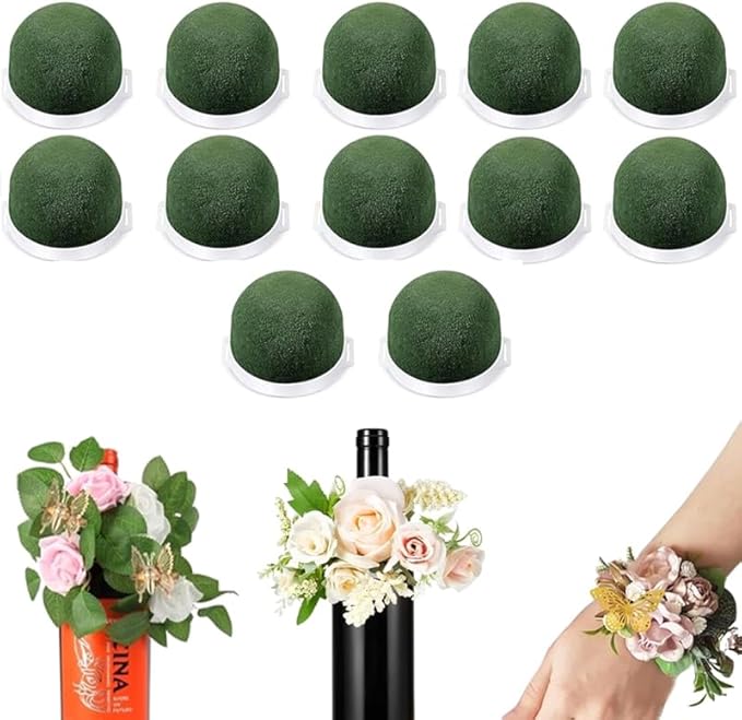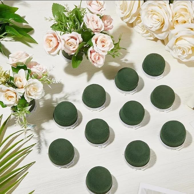 Ucuse Lot de 12 mini supports ronds en mousse florale - Fournitures d'arrangement floral en mousse verte pour fleurs fraîches, décoration de bouteille de vin, mariage, fête