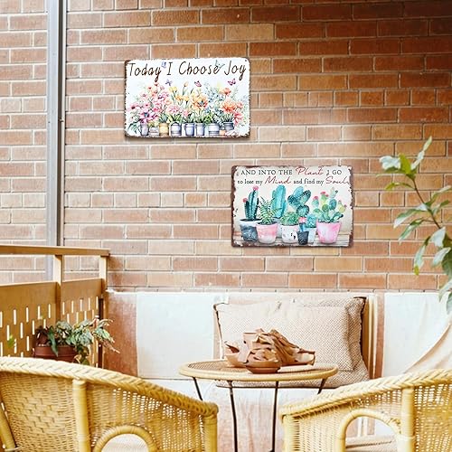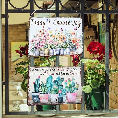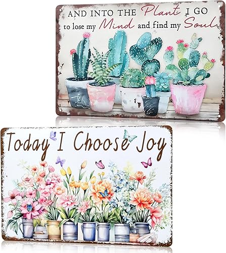 2 Pack Plaque en Métal Étain - Panneau Métal Fleurs Vintage 20 x 30 cm - Décoration Murale pour Jardin, Terrasse, Véranda - Enseigne Rétro pour Cuisine et Maison