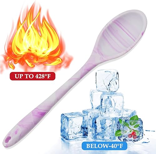 Lot de 4 cuillères de cuisine en silicone antiadhésives - Cuillères de service - 27 cm - Sans BPA - Grandes cuillères de cuisine pour cuisine, pâtisserie