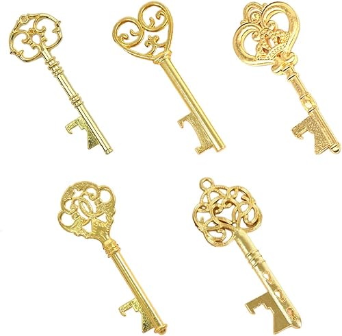 OSUWLSI Lot de 5 décapsuleurs en Forme de clé Vintage Cadeau Mariage invité - Une fête, Un Mariage, Un Banquet - Doré