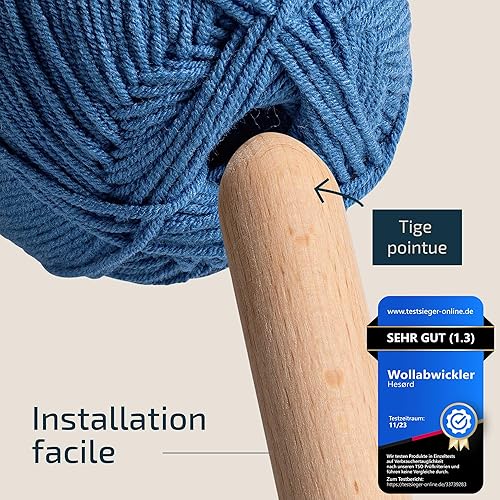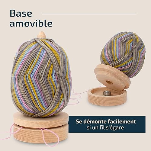 Hesørd Dérouleur de Laine en Bois Monté sur Roulement à Bille - Porte-Laine, Porte-Fils - Pour Tricoter et Crocheter de Manière Régulière sans Faire de Nœuds