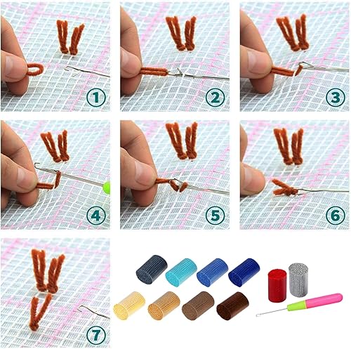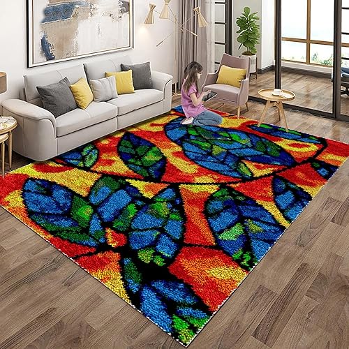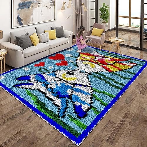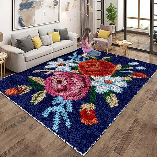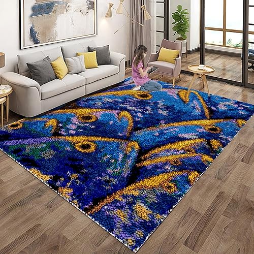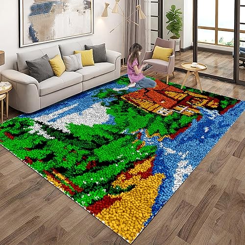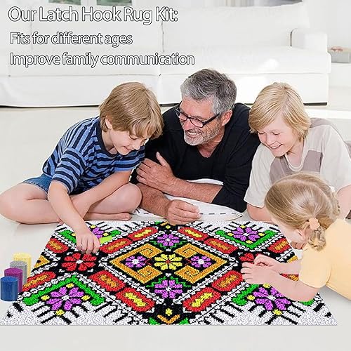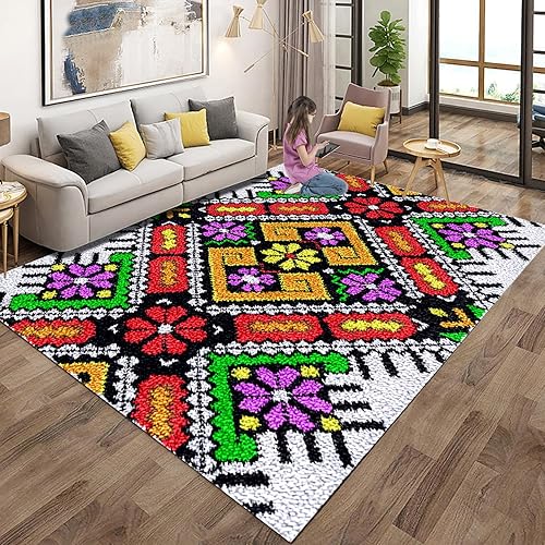Bnehwogu 38 x 50 cm Kit Tapis Point Noué à Faire - Kits de Crochet de Loquet - Tapis Noué à Nouer Soi-Même Kits pour Adultes Débutants - Point de Croix - Latch Hook Kit de Tapisserie