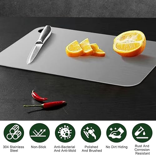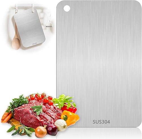 Planche a Decouper Inox Planche a Decouper En Titane Planche Titane Cuisine Decouper Double Face De Qualité Alimentaire Planche à Découper En Acier Inoxydable Pour Viande,Fruits Et Légumes