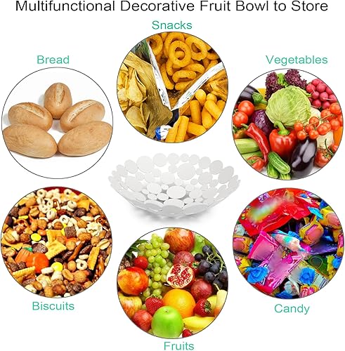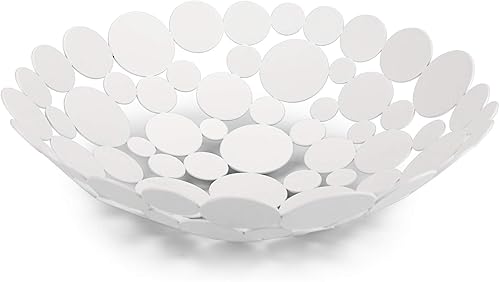 SUMTREE Corbeille à fruits en fer, conservation des fruits, pour légumes, pain et fruits dans la cuisine, 30 x 30 x 9 (rond, blanc)