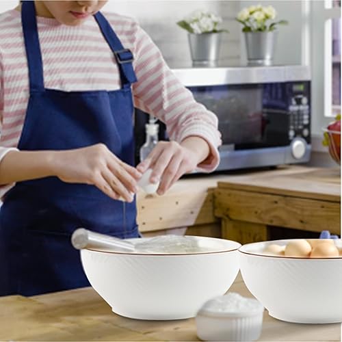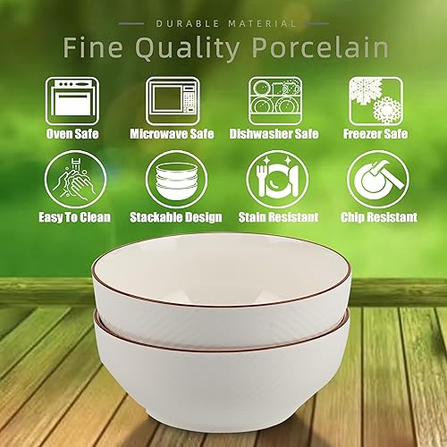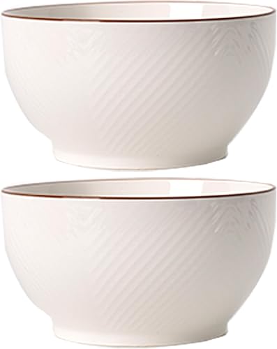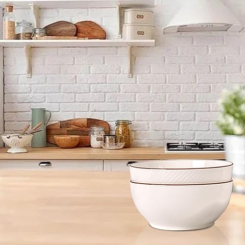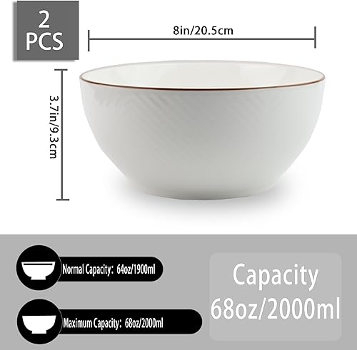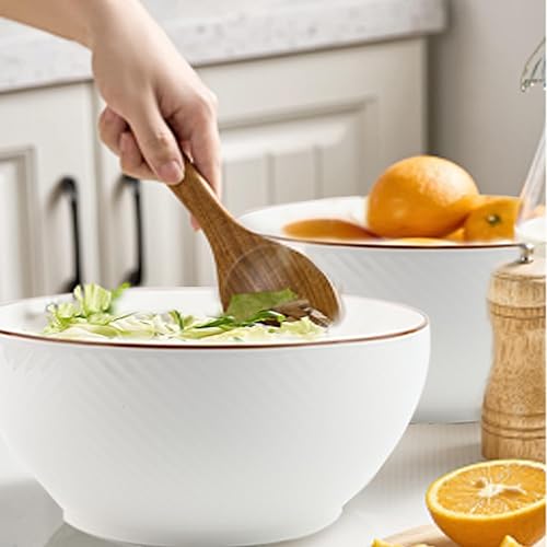 ALLUSEIT Lot de 2 grands bols de service en céramique pour salade, soupe, ramen, fruits, préparation, cuisine, fête, etc. Passe au micro-ondes 20,3 cm