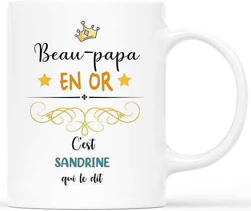 Cadeau Plus Mug Personnalisé Prénom - Beau-papa En Or - Cadeau Beau Papa, Idee Cadeau Beau Pere, Beau Papa Cadeau, Cadeau Fete Des Beau Pere, Mug Beau Papa, Tasse Beau Papa