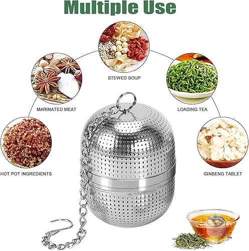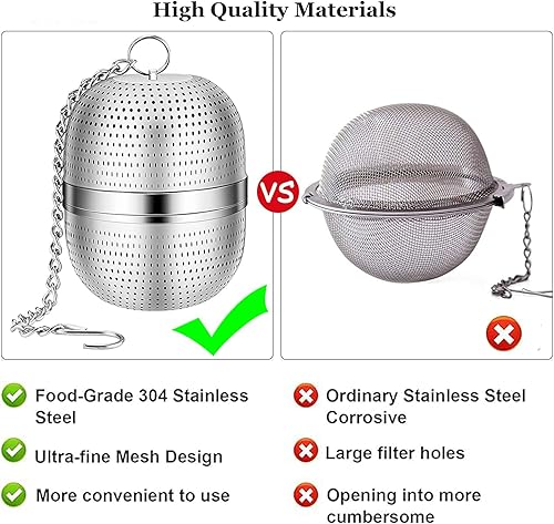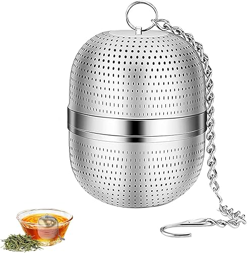 Qinsky Boule à Thé,Boules à Thé Acier Inoxydable Infuseur à Thé Trou Fin avec Chaîne et Couvercle Infuseur Thé peut être utilisé pour Thé, Épices et la Plupart des Tasses et Théières