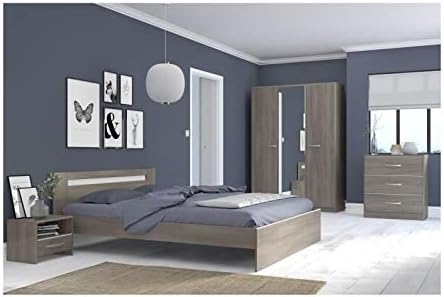 Générique YSA Chambre Complete Adulte - Contemporain - Décor Noyer Silver - l 160 x L 200 cm