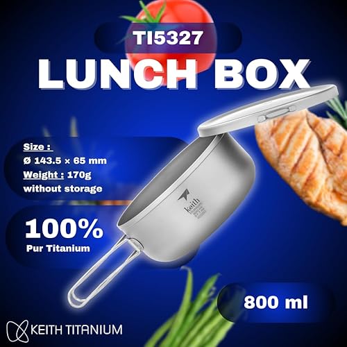 Keith Titanium Lunch Box – Boîte à déjeuner adulte légère et durable pour hommes et femmes – Idéale pour le travail, l'école, les activités de plein air avec sac de rangement en maille 800 ml