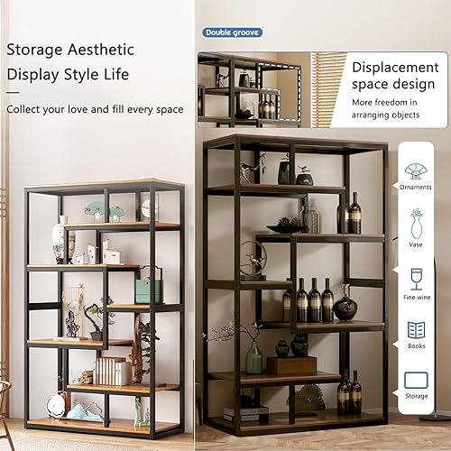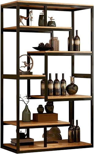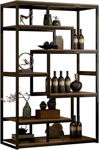 Bar de vitrine d'alcool pour la maison, casier à vin sur pied, armoire à whisky, étagère de rangement sur pied, présentoir industriel en bois avec cadre en métal, pour cuisine, salle à mange