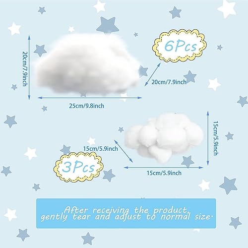 Nozldots Lot de 18 décorations nuages pour plafond, décoration nuage suspendu en simulation de coton, accessoires de nuages artificiels 3D