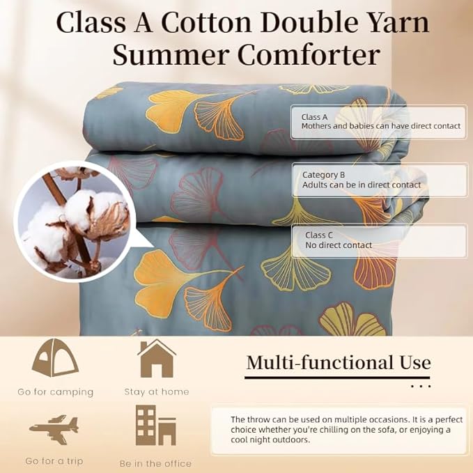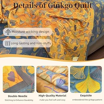 VBVARV Ownkoti Courtepointe De Ginkgo Motif De Feuille De Ginkgo Courtepointe Réversible en Coton Courtepointe Rustique Ultra Douce