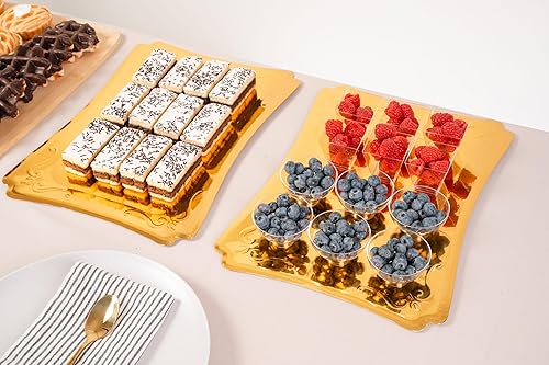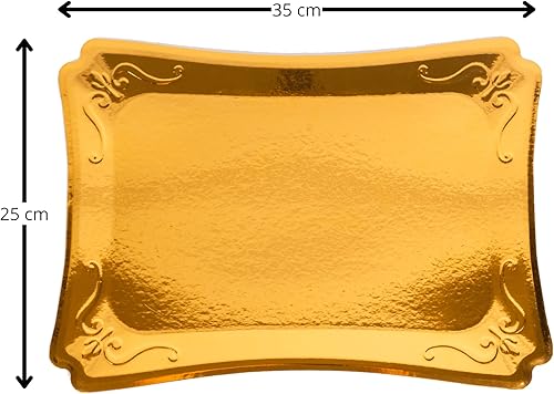 ZOLA PARTY – Lot de 10 Plateaux Traiteur en Carton Doré – Présentoirs Gâteaux, Pâtisseries, Apéritifs, Buffets, Hors-d’œuvre, Amuse-Bouches – Mariage, Anniversaire, Noël – 25 x 35 cm
