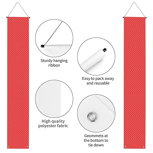 Bannière de porche à pois rouges et blancs - Décorations de fête, toile de fond à suspendre pour porte, maison, intérieur et extérieur
