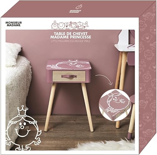 CMP Paris Table De Chevet Monsieur Madame - Madame Princesse - Rose - L 35 X H 48 X P 35 Cm