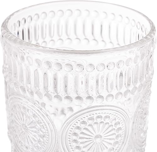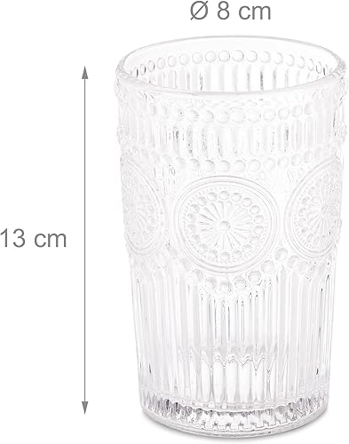 Relaxdays Lot de 4 Verres avec Motifs, 400 ML, Vintage, Eau, jus Fruits, lavables au Lave-Vaisselle, Transparents