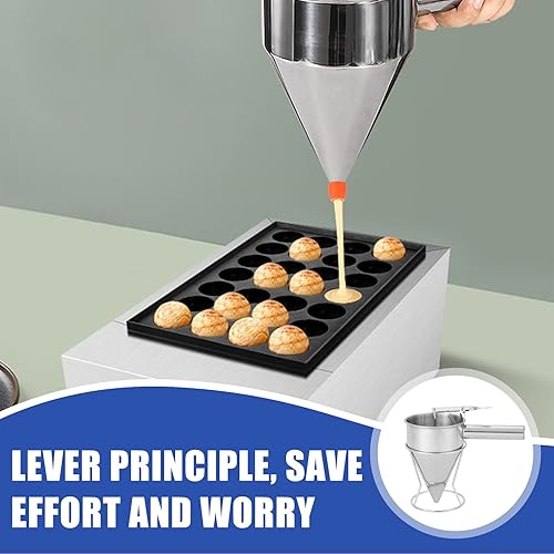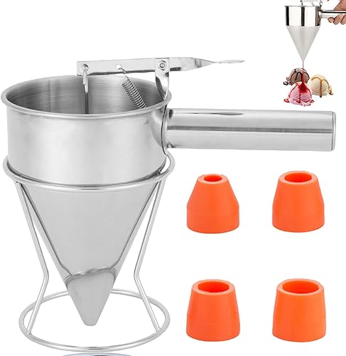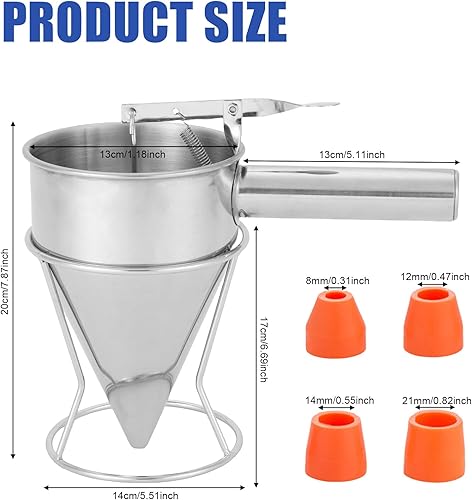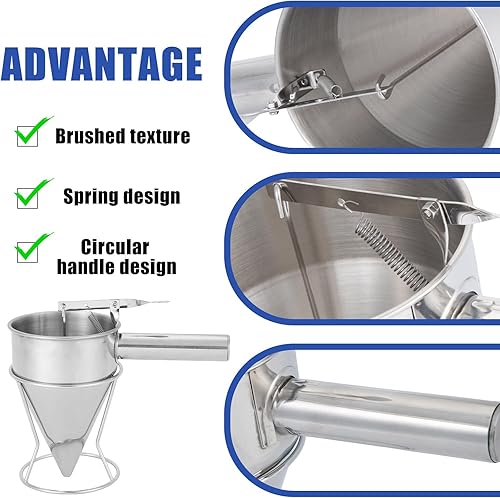 Leikurvo Distributeur De Pâte À Crêpes: Portionneuse De Pâte en Acier Inoxydable, Doseur De Pâte Manuel, pour Cuisine Professionnelle (1.2L, Argent, INCL. 4 Embouts en Silicone)