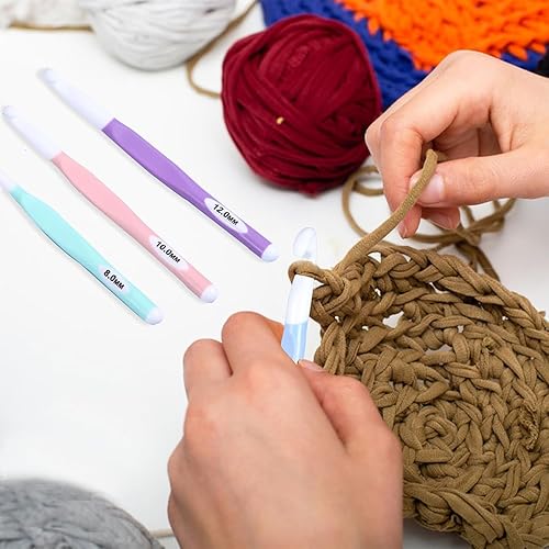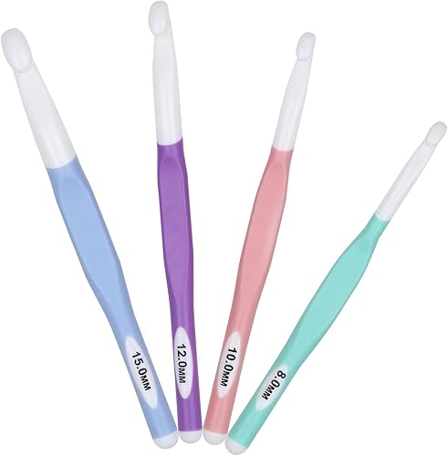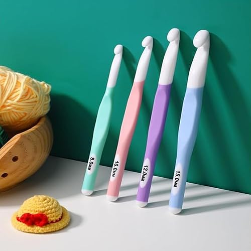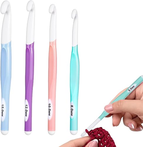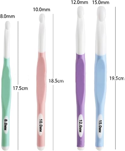 Lot de 4 Grandes Aiguilles à Crochet, 8 mm/10 mm/12 mm/15 mm Longues Aiguilles à Crochet avec Poignée en Caoutchouc, Crochets à Crochet avec Poignée en Plastique pour l'arthrite