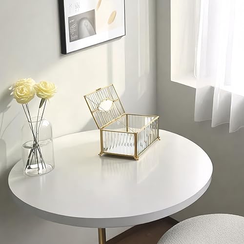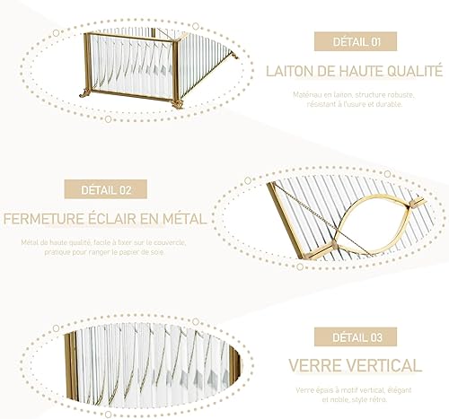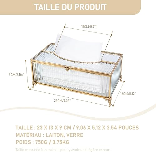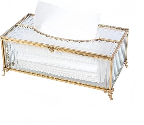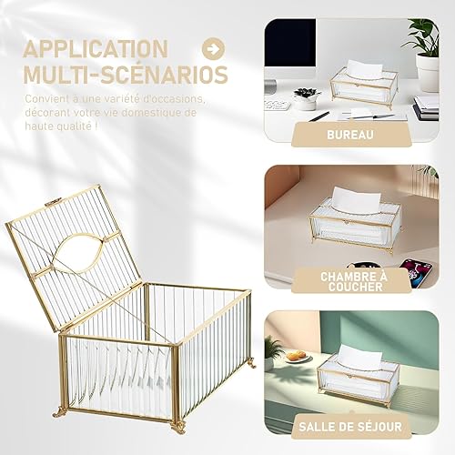 SLHEQING Boîte à mouchoirs rectangulaire en Verre Tissus Distributeur en Doré pour la Salle de Bain, la Cuisine, Le Bureau ou la Chambre à Coucher (A17-C)