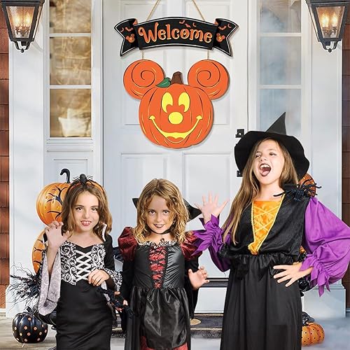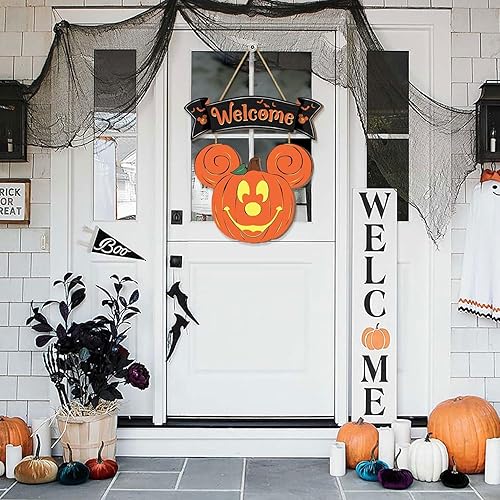 Couronne de Porte de Forme de Mick Mouse d'halloween pour Deco Halloween, décoration de Jardin, Accessoires de Cour, Maison hantée, cimetière et pelouse extérieure