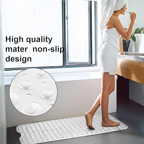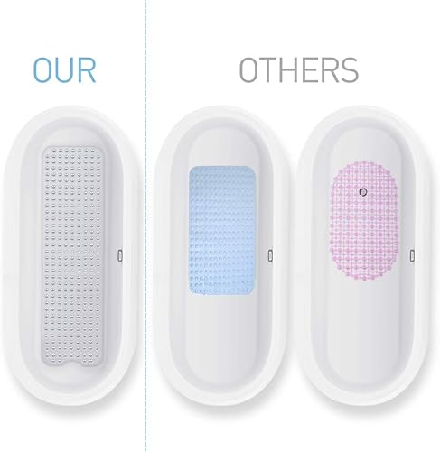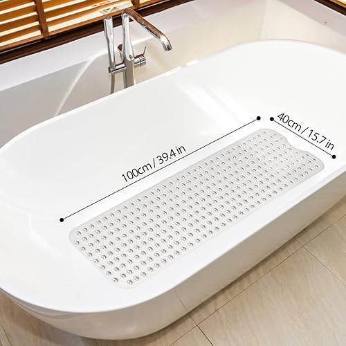 Tiikiy Tapis de Baignoire Antidérapant, Tapis de Douche Extra Long avec 200 Ventouse et Trou de Drainage, Tapis de Bain Anti-Moisissures, Lavable en Machine & sans BPA 100 x 40 cm(Blanc)