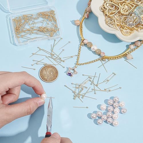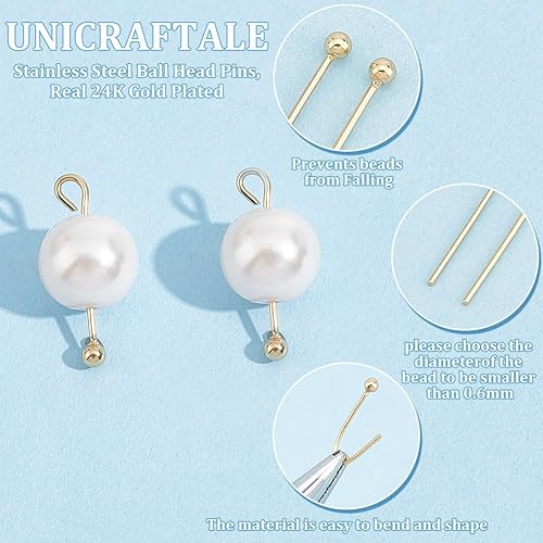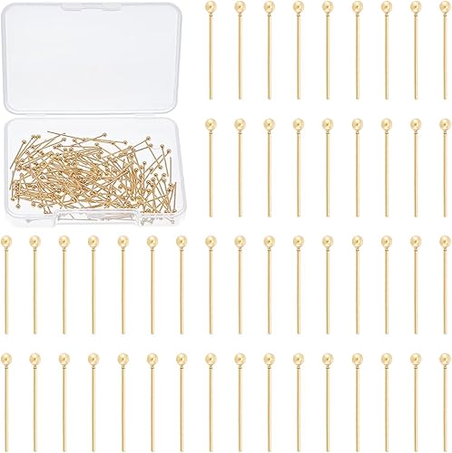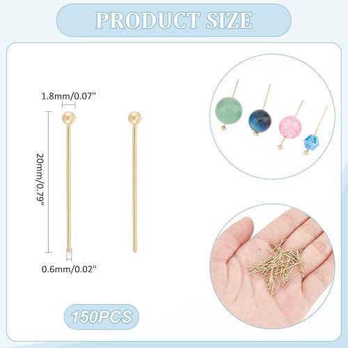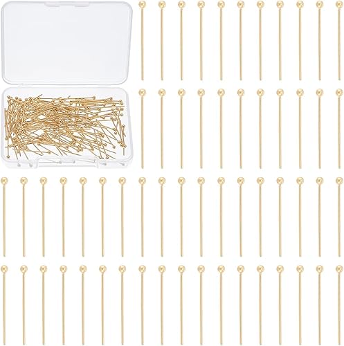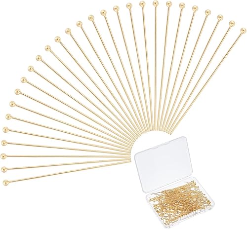 UNICRAFTALE Environ 150 pièce D'Épingles à Tête Plaquées Or 24 carats Pliables de 20mm en Acier Inoxydable à Tête Sphérique en Métal pour la Fabrication de Bijoux Artisanaux.