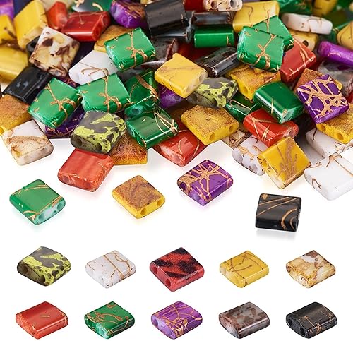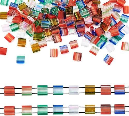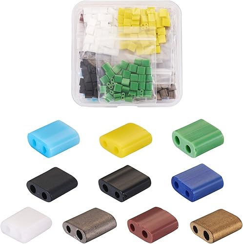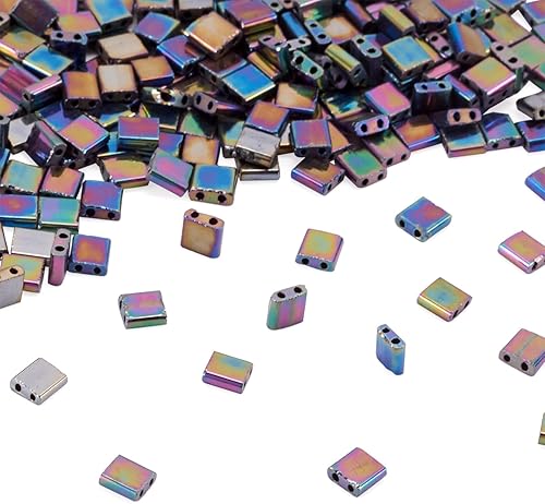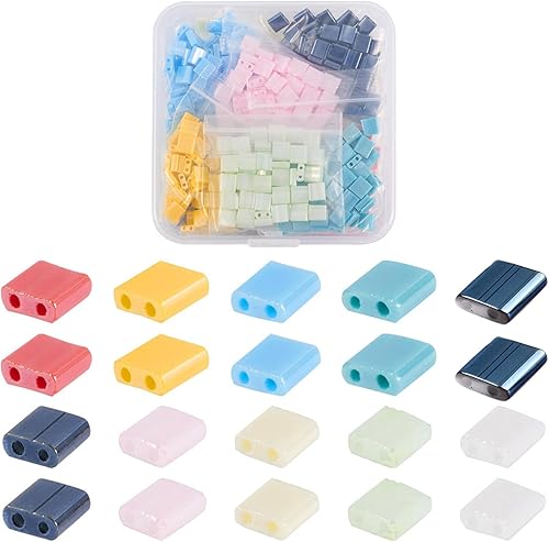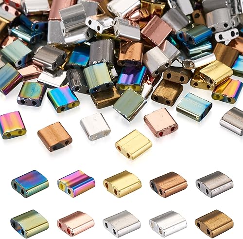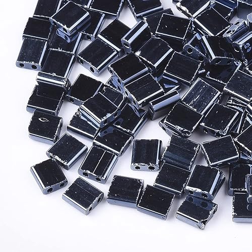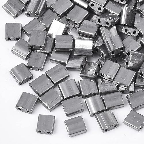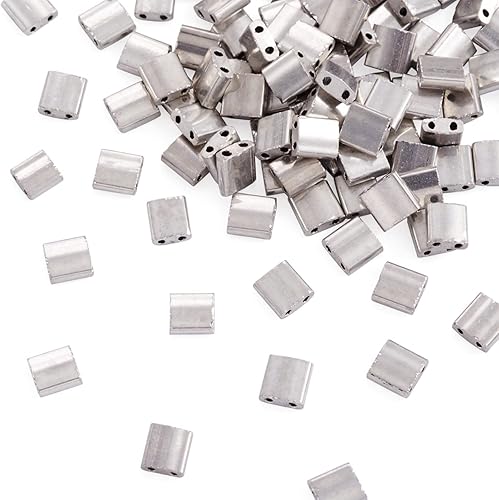 Lot de 200 perles rectangulaires Tila en verre galvanisé à 2 trous de 5 mm pour la fabrication de bijoux