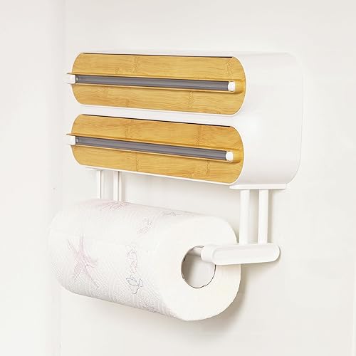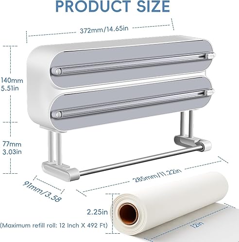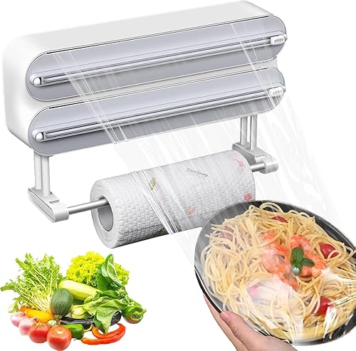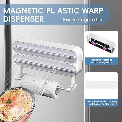 Distributeur magnétique de film plastique avec cutter 3 en 1 Distributeur de papier d'aluminium avec porte-serviettes en papier et cutter rechargeable Distributeur de film étirable Distributeur de