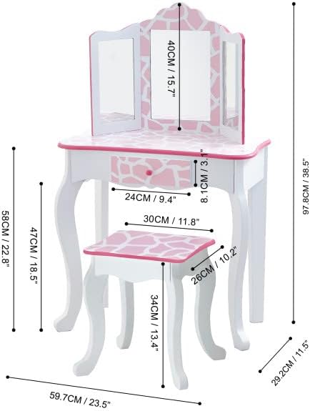 Fantasy Fields Coiffeuse Enfant en Bois Table Maquillage Miroir Tabouret Teamson TD-11670D