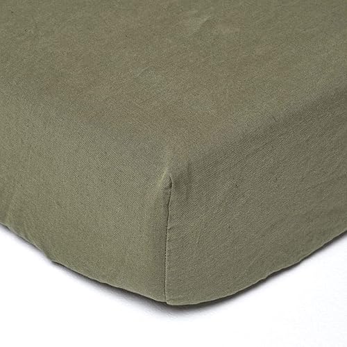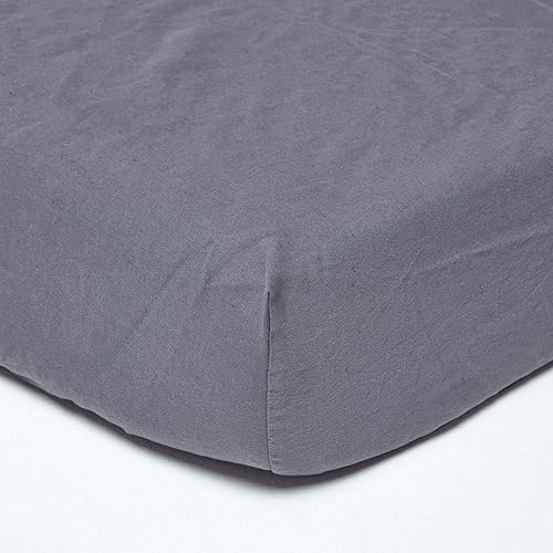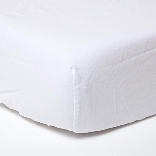 HOMESCAPES Drap-Housse élastiqué en Lin lavé Blanc – 90 x 190 cm